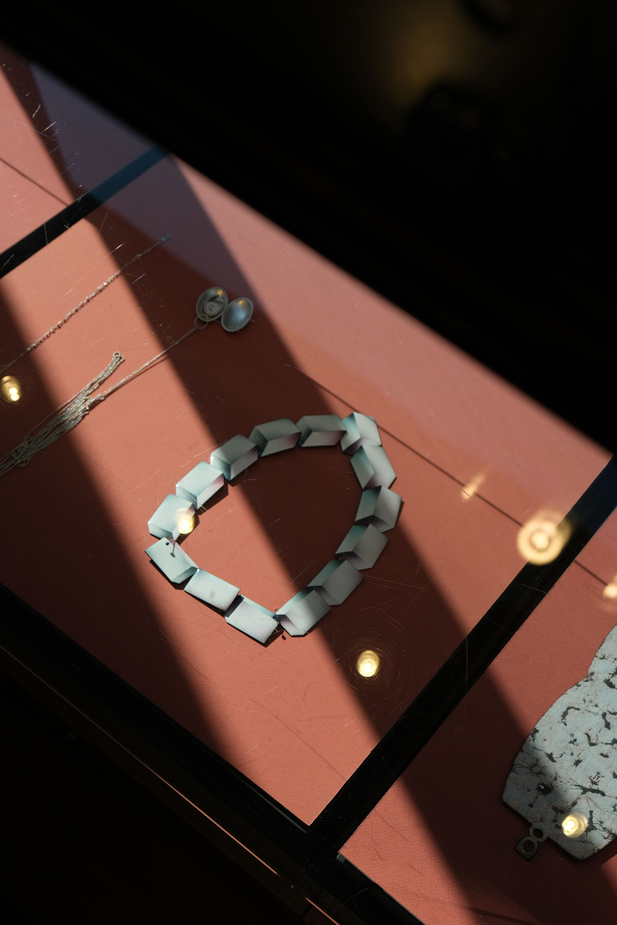 Présenté dans Boîte avec couvercle, une exposition dédiée au dialogue entre bijou et réceptacle, il a exploré la notion de support et d’espace perceptif.
