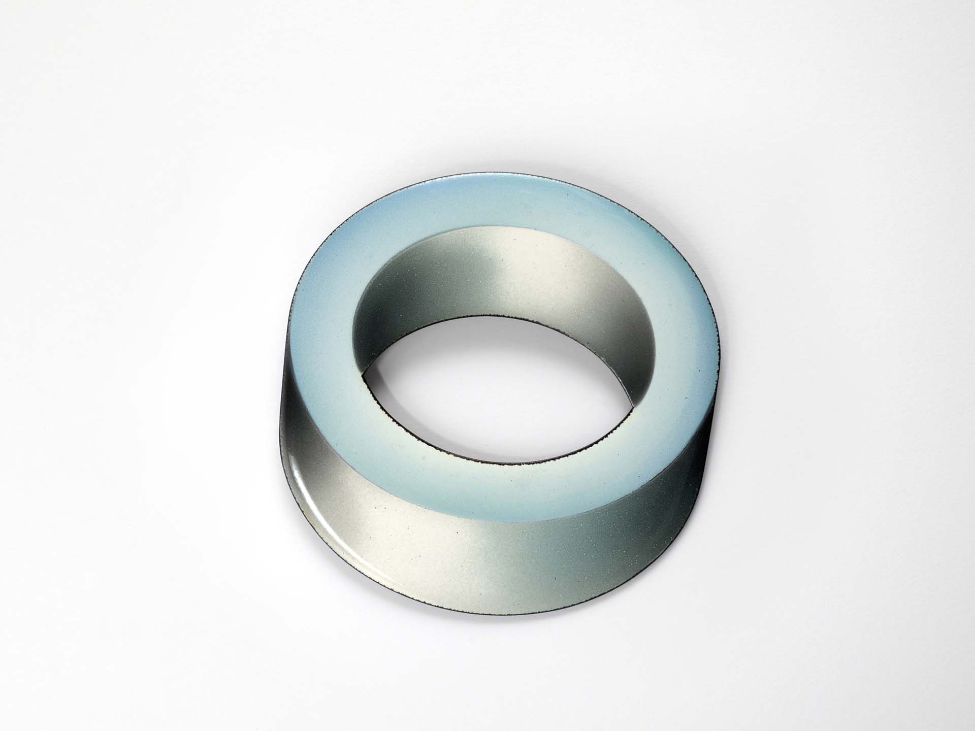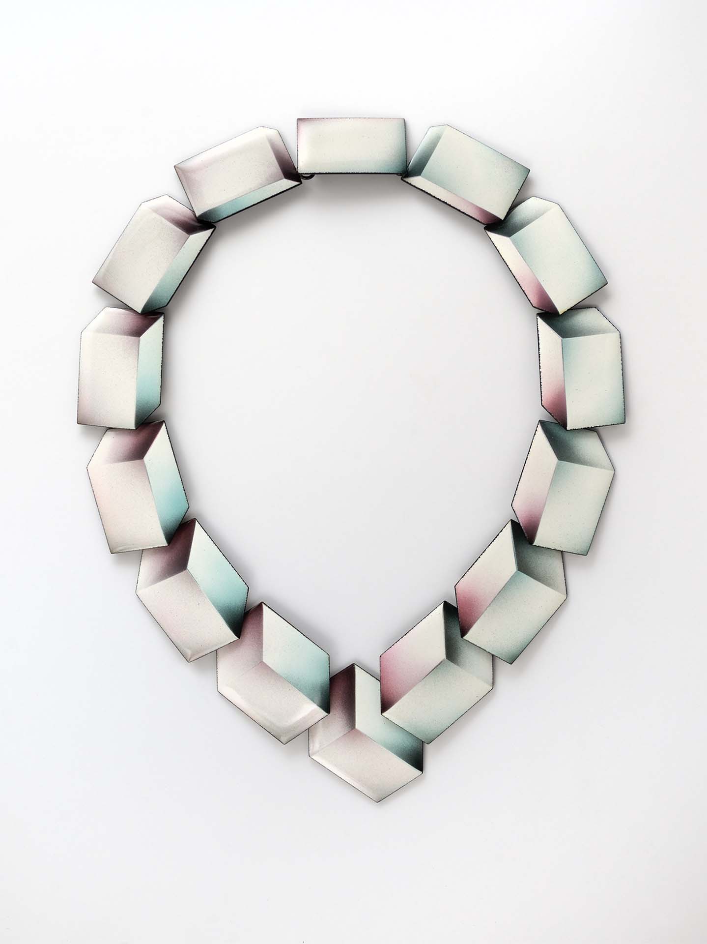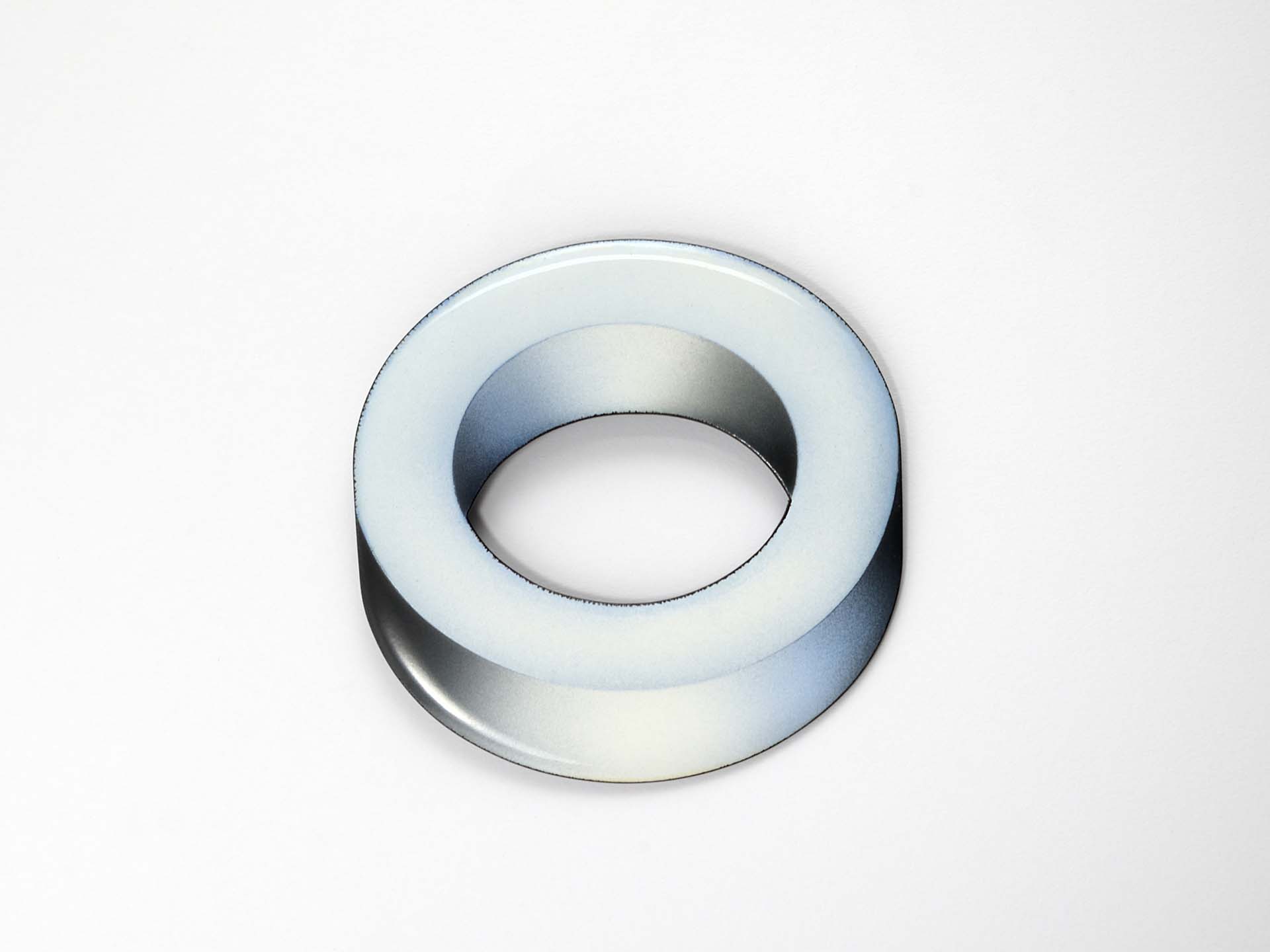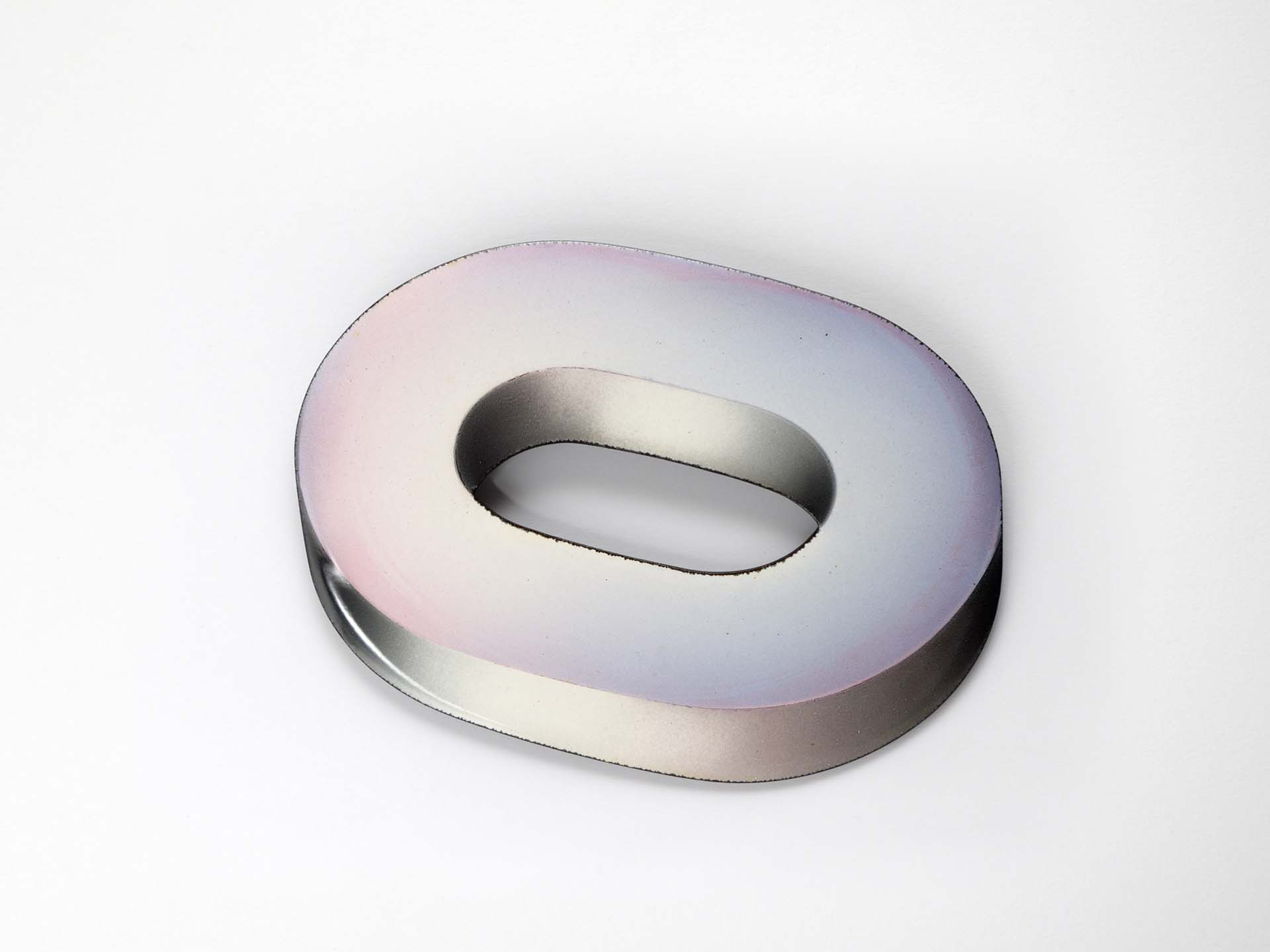 Christoph Straube utilise la surface lisse de l’acier et des formes simples comme une toile vierge. Grâce à l’émail et à des dégradés d’une grande maîtrise, il crée des illusions de volumes en trois dimensions. Ses œuvres décrivent un espace illusoire perçu seulement par le regard.