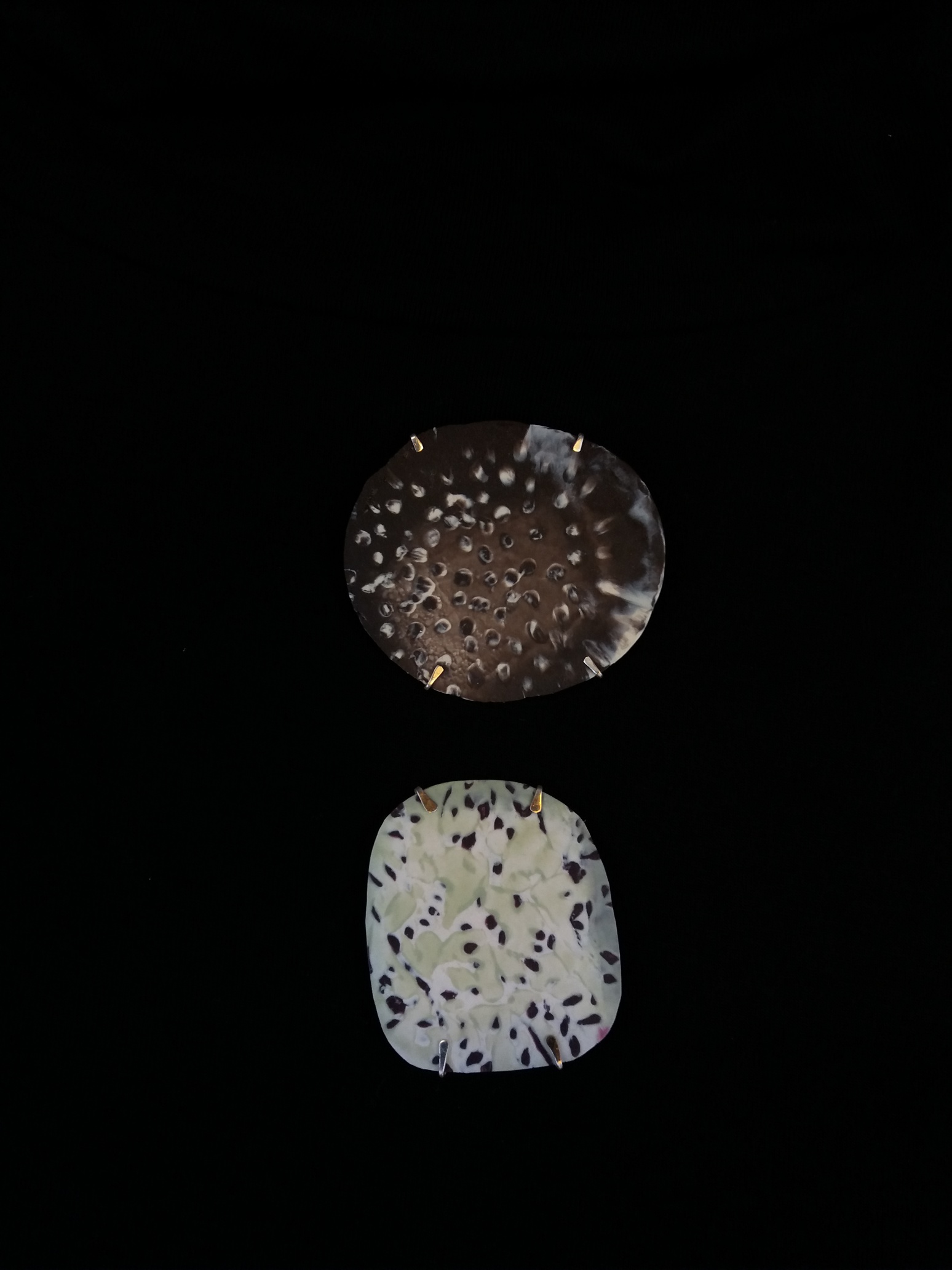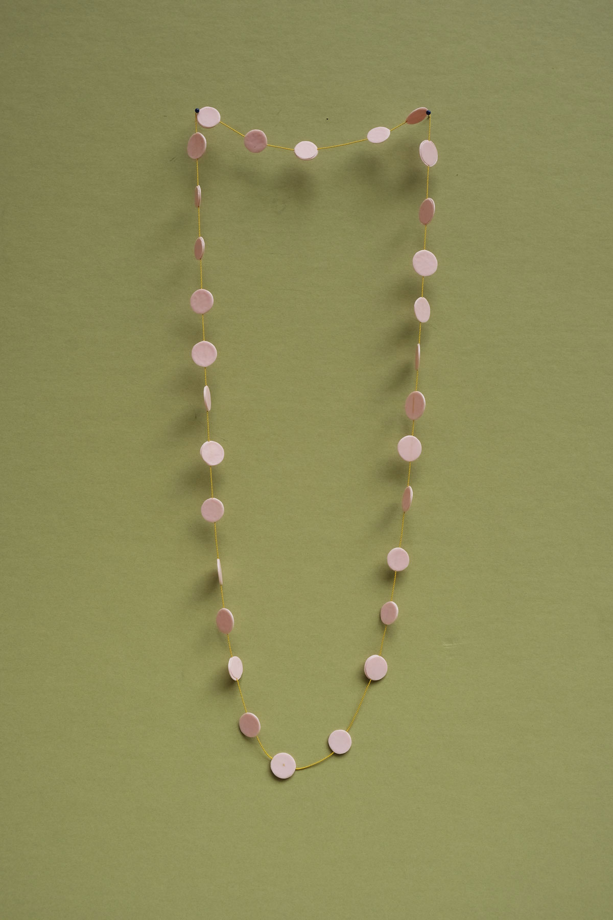 Loet Gescher qui vit et travaille à Maastricht, transcende l’idée du plastique recyclé en créant des bijoux légers et colorés, parfois encore odorants. Elle explore la matière, se l’accapare et parvient à nous faire oublier son usage premier. Une broche se pose, un fil de soie constellé de pastilles danse au gré du mouvement, le collier se porte sans pesanteur avec beaucoup d’élégance.