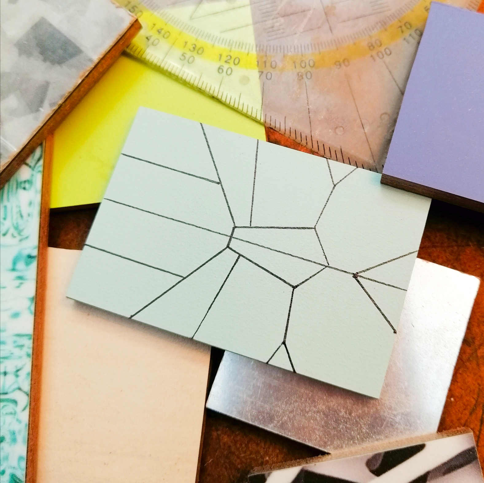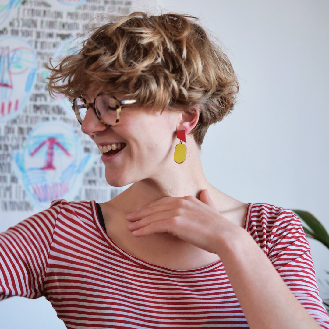 Karen Vanmol lives in Antwerp and teaches jewellery design in Brussels. As an atypical artist, she starts from a medium that we have all known in our daily life: Formica or laminate. It is with an amused look, full of memories that we appreciate her work. Karen cuts, assembles, plays with geometry and misaligns her coloured pieces by favouring asymmetry.