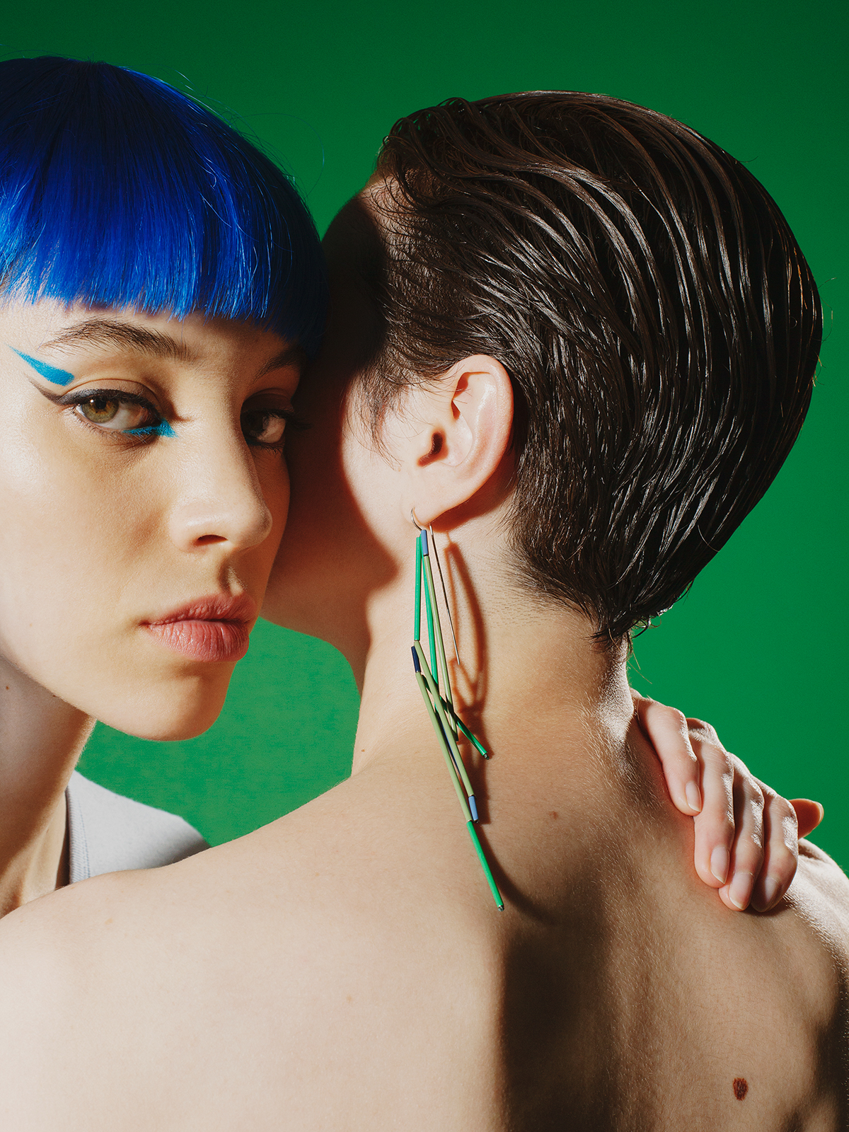 Lou Sautreau lives and works in Brussels. A formal research combined with selected colours generates jewellery that both moves and embodies a touch of poetry. So many objects that we embrace for their personal strength and that make us quiver. Her work is a journey between materials, jewellery-making techniques and textile awareness.