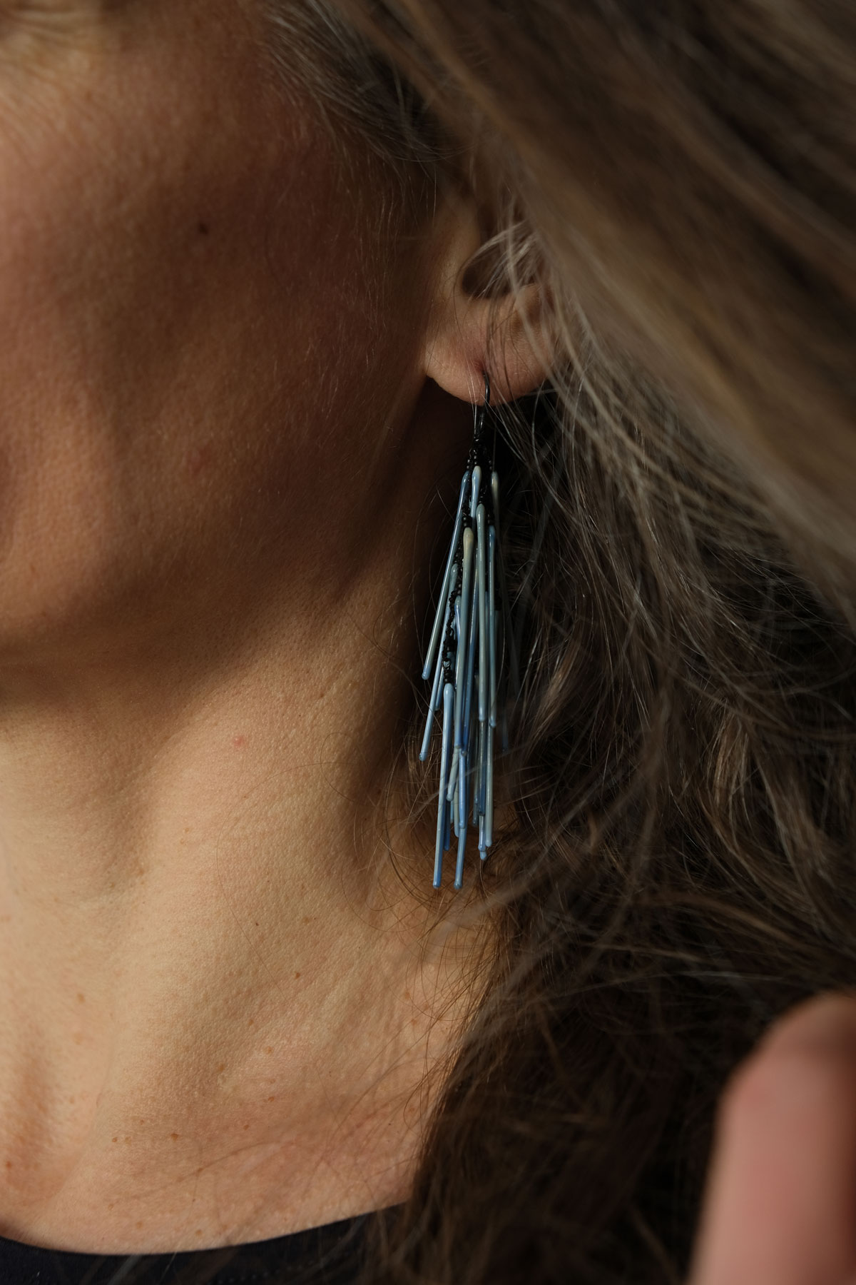 A slight tinkle accompanies the movement of her jewellery, like the ruffle of a taffeta dress, a light breeze that blows a cascade of colours to the ear. The creations of Nathalie Tisserand, whose workshop is located in Dordogne, France, take us back to the 1920s but are resolutely of our time.