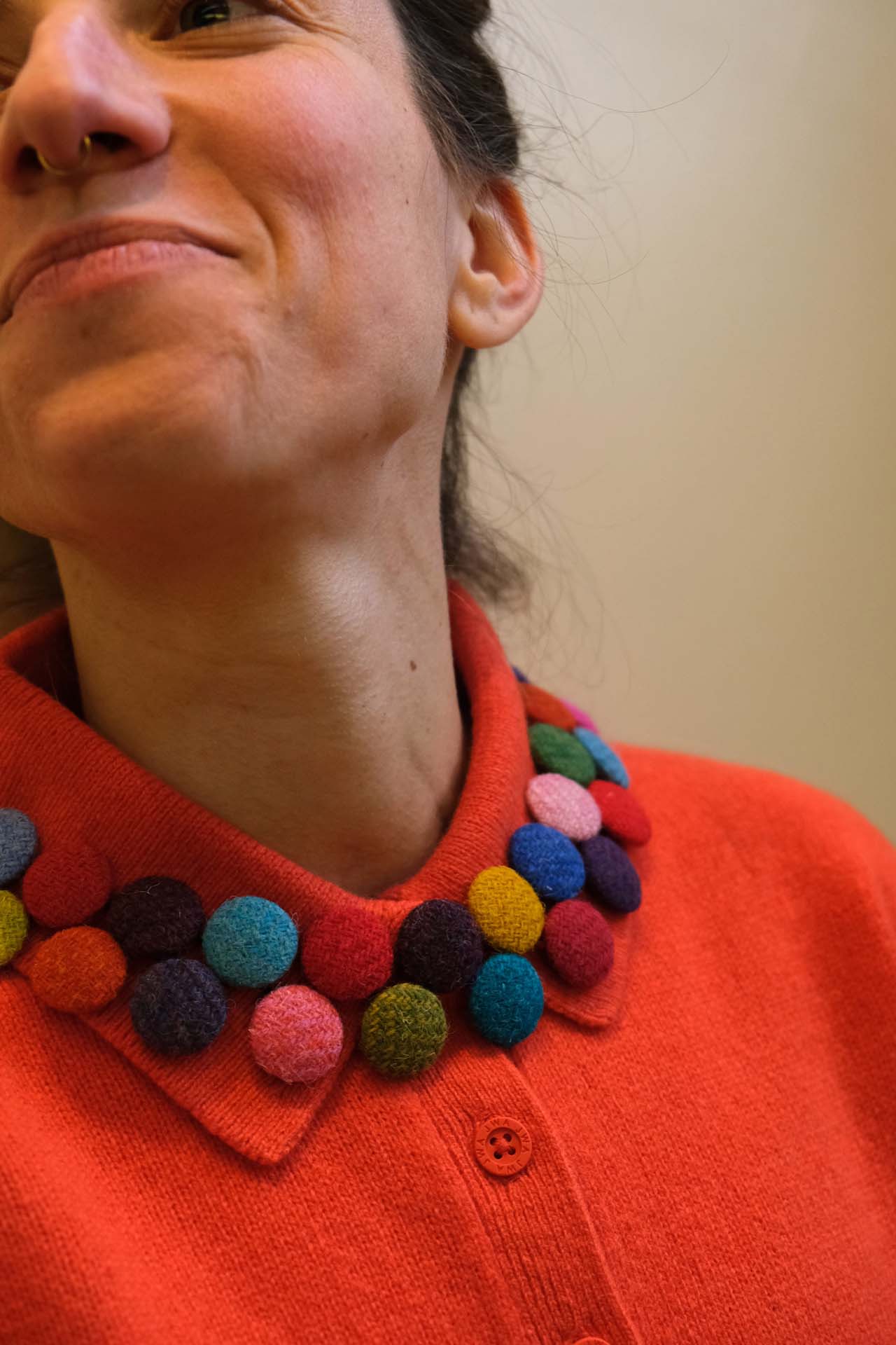 Cécile Bertrand’s jewellery, made from ties and vintage textiles, combines ecological commitment with poetry. Her unique creations, imbued with colour and generosity, embody her art of breathing new life into forgotten items.