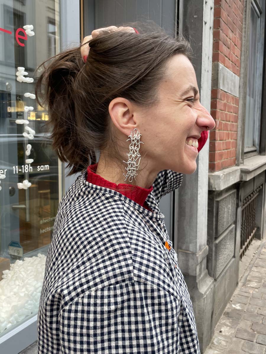 Haute lisse earrings in 925 silver or gold-plated brass, polished or matt. There is a hook at the back that allows you to remove the lower part of the earring.