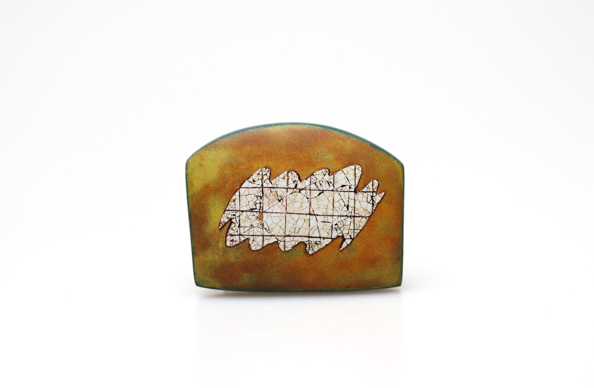 Miki Asai, broche, bois, laque Kashu, coquille d'oeuf, pigment, argent, acier, exposition bijoux, eggsquisite