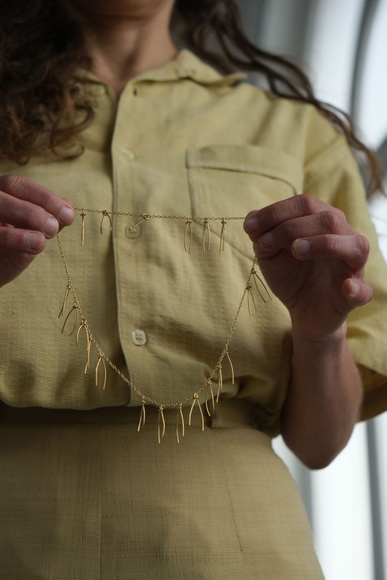 “Ik heb geen lievelingsmateriaal, wat ik leuk vind is de kunst van het maken. Het is de fysieke betrokkenheid van het lichaam, het is de aanraking van het materiaal, de sensatie, de geur, het is het instinct dat ontwaakt en zich kan uiten. Het gereedschap zijn, het vuur zijn, de draad zijn die tot leven komt, de tijd om een verhaal te vertellen. Dan terugvallen in de leegte, wachten, overwinteren, de stromen opslaan tot de volgende beving. Het draait allemaal rond traagheid…” Chloé Noyon