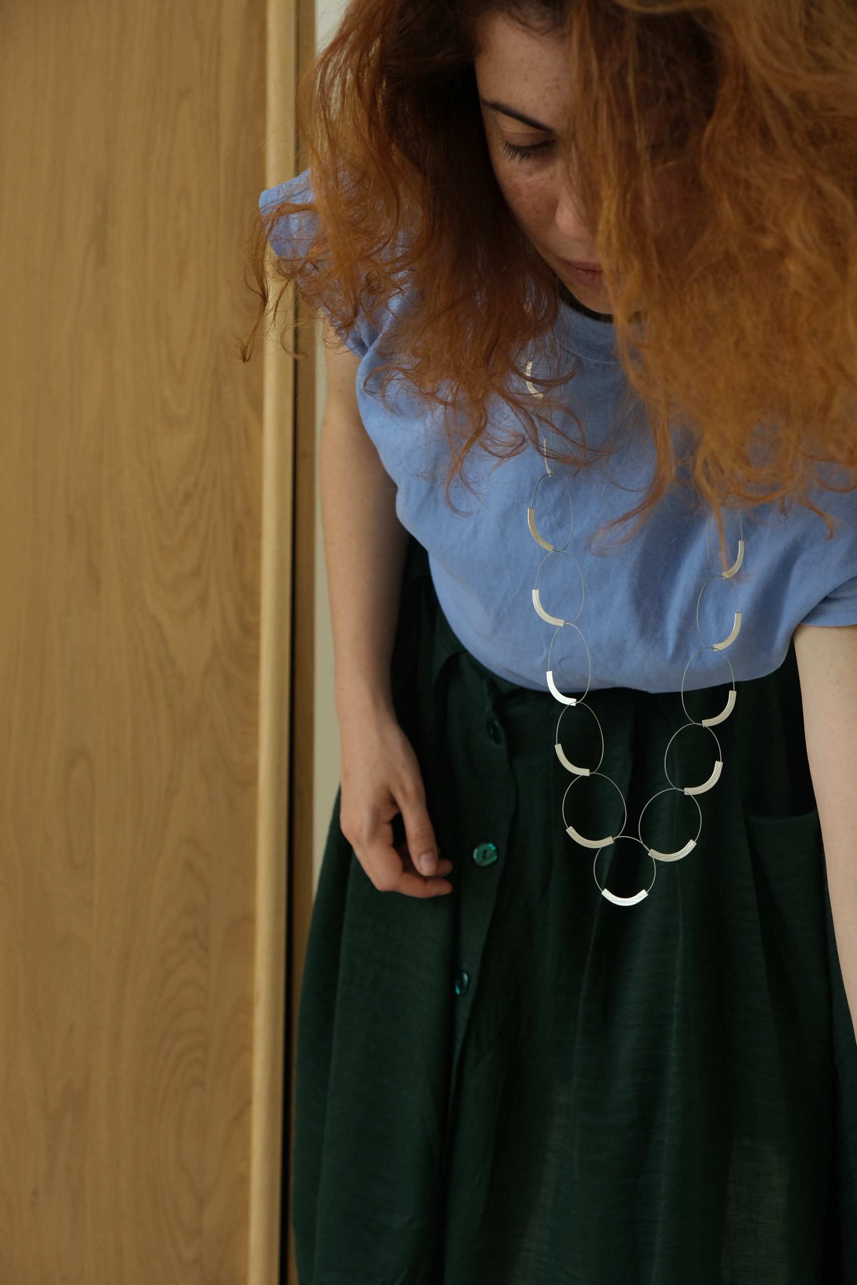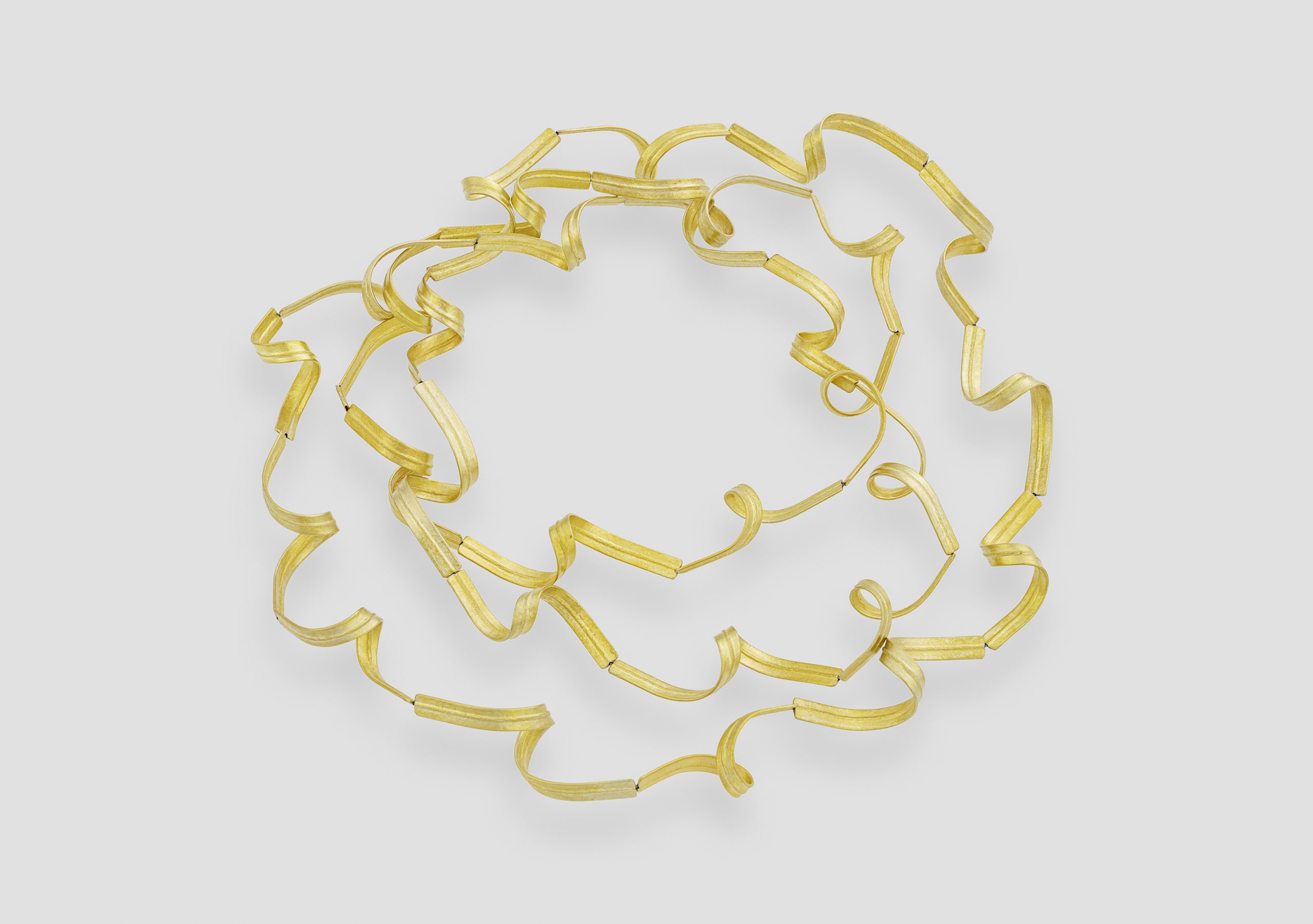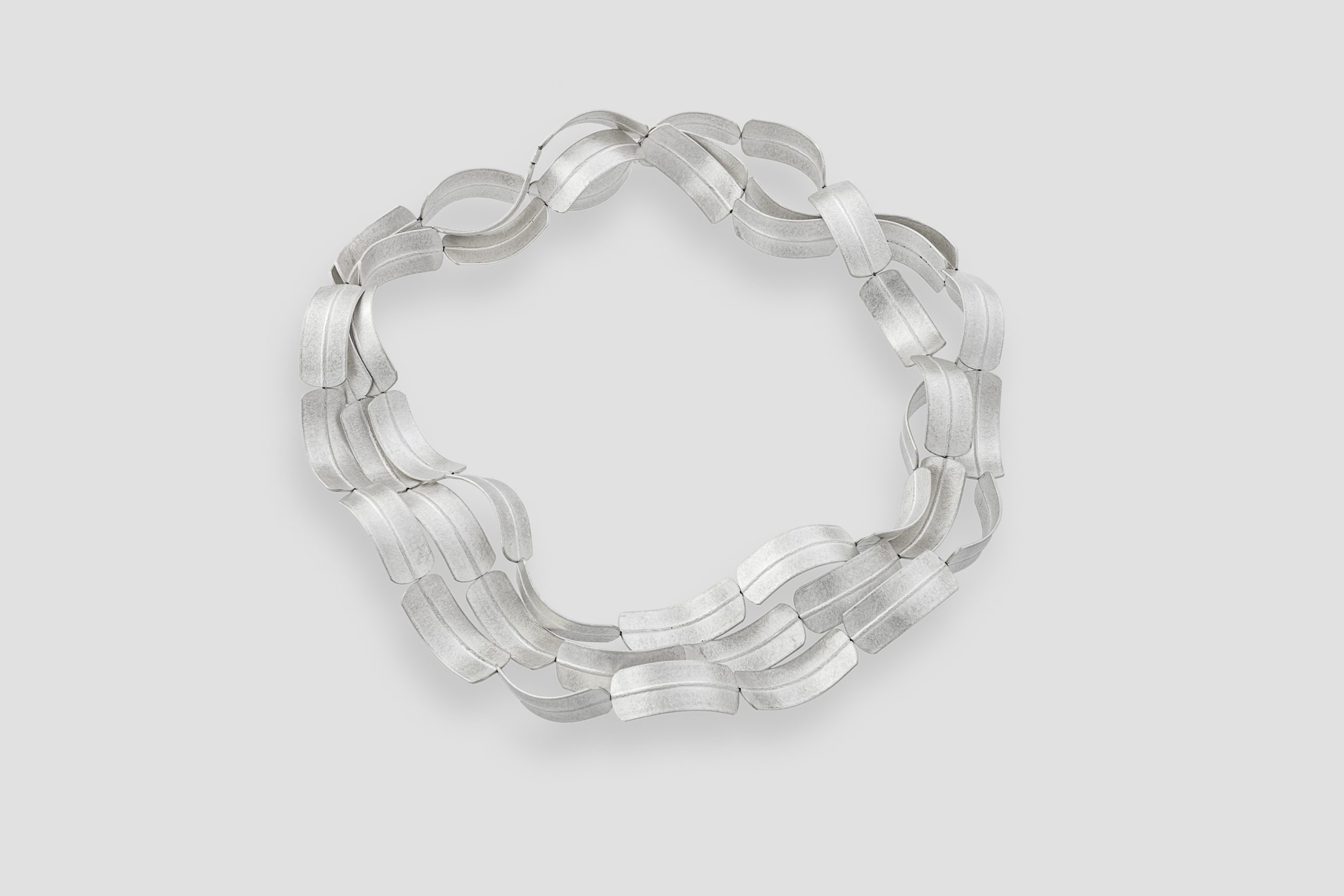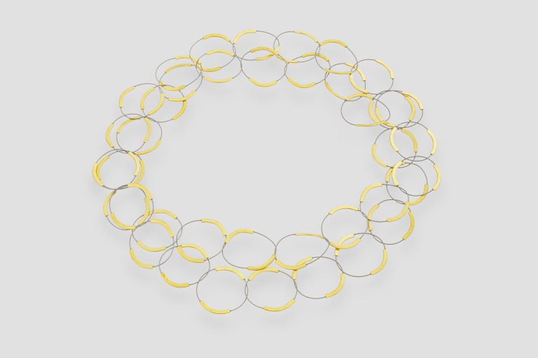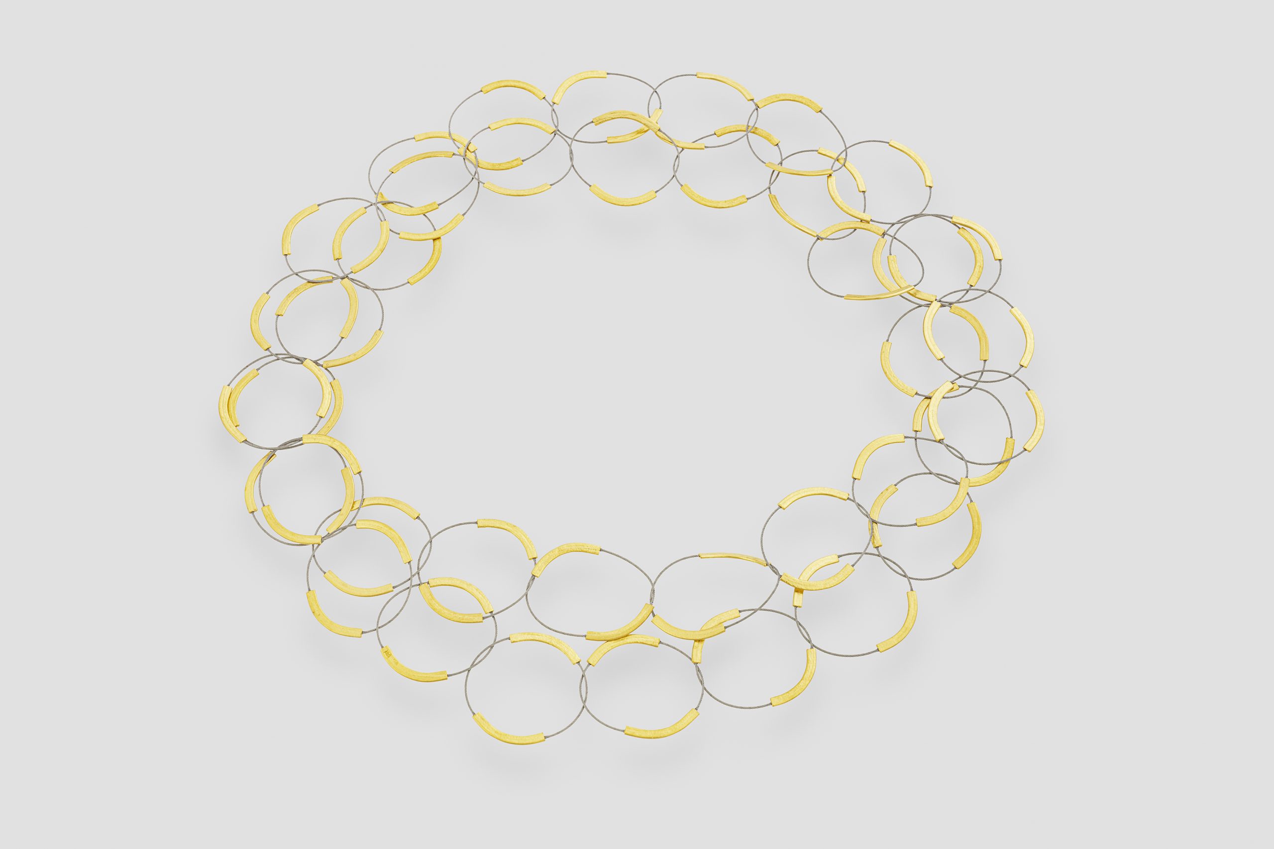 Lichtheid en vloeibaarheid karakteriseren de juwelen van Franziska Rappold. De ontwerpster leeft in het zuidwesten van Duitsland. In de techniek van het elektrovormen heeft zij een sobere en minimalistische taal gevonden die haar tijdloos maakt. Zo dicht mogelijk bij het lichaam, dwarrelen kleine lichtjes rond.