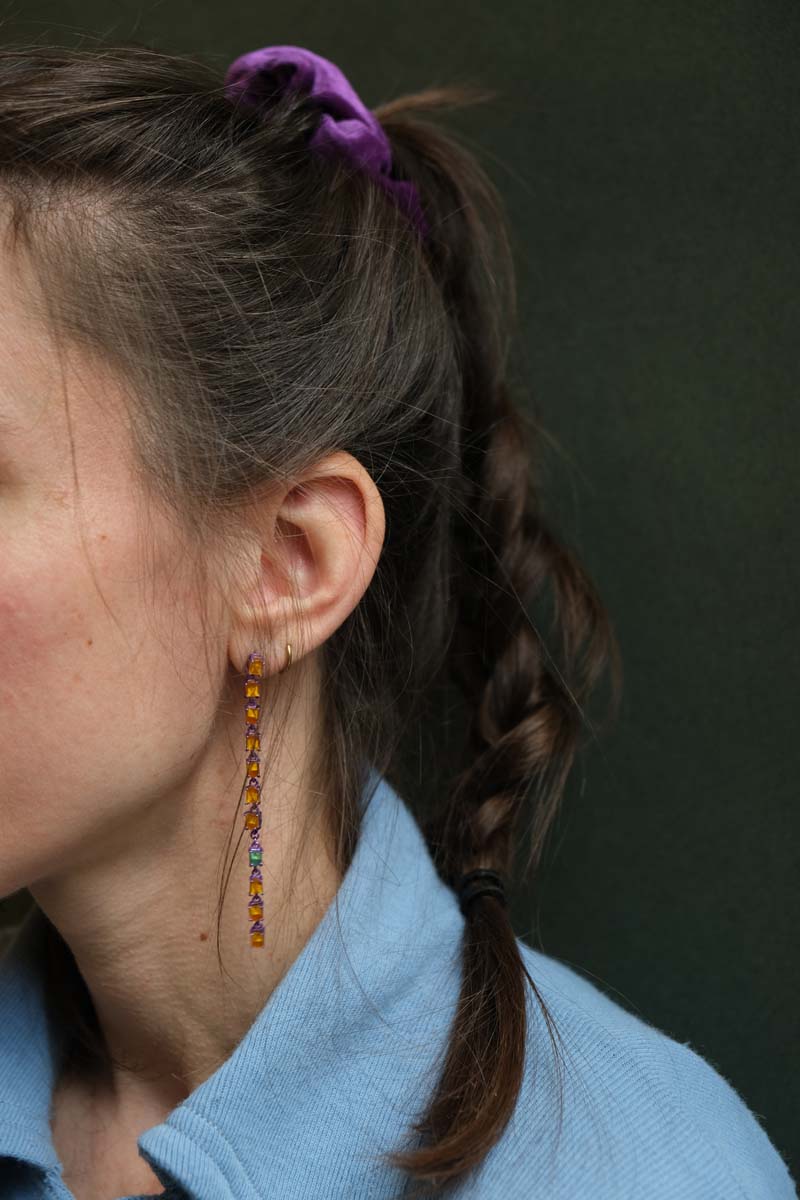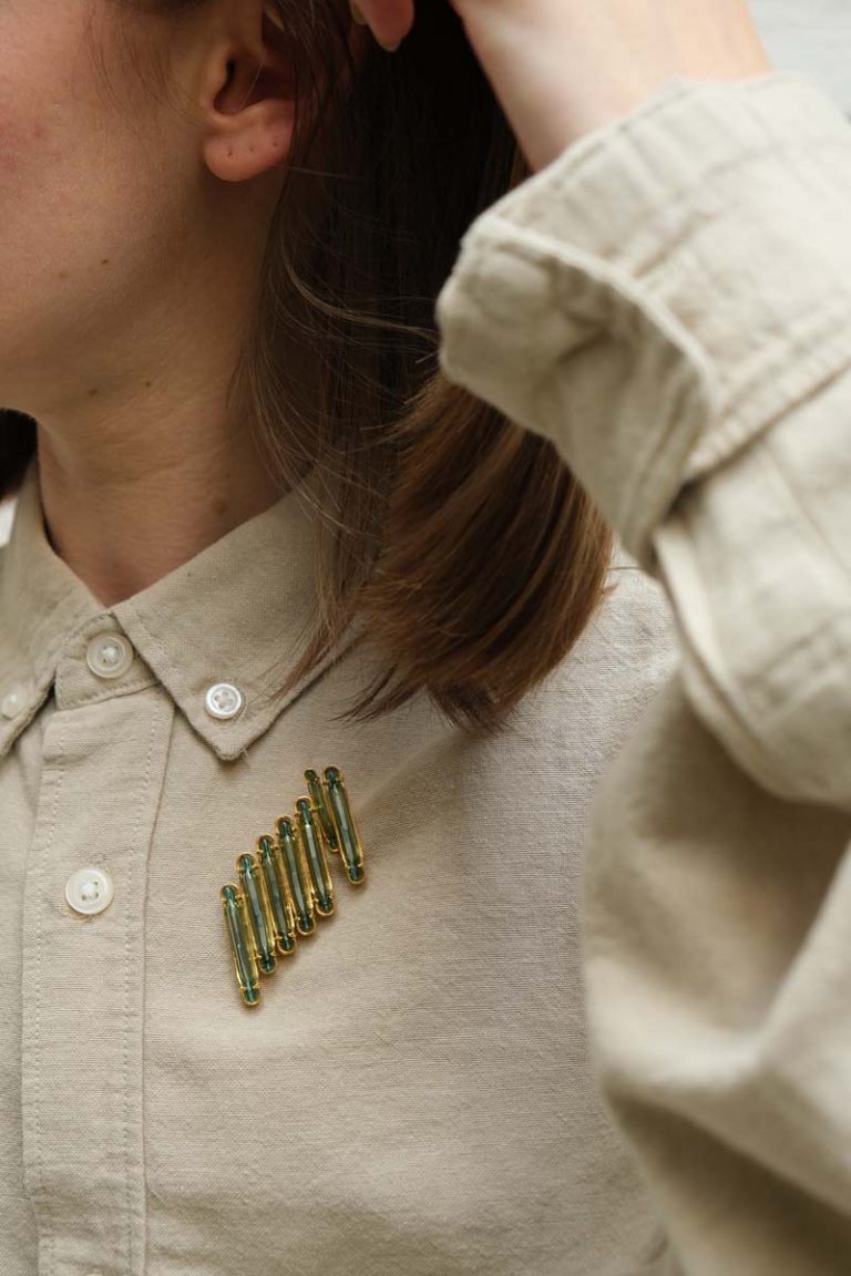 Xinyi is een ontwerpster die gebruikte elektronische onderdelen omzet in eigentijdse sieraden die ze haar Artificial Intelligems noemt. Geïnspireerd door de vormen, texturen en kleuren van deze technologische fragmenten, onthult ze de verborgen schoonheid van deze objecten uit onze digitale wereld.