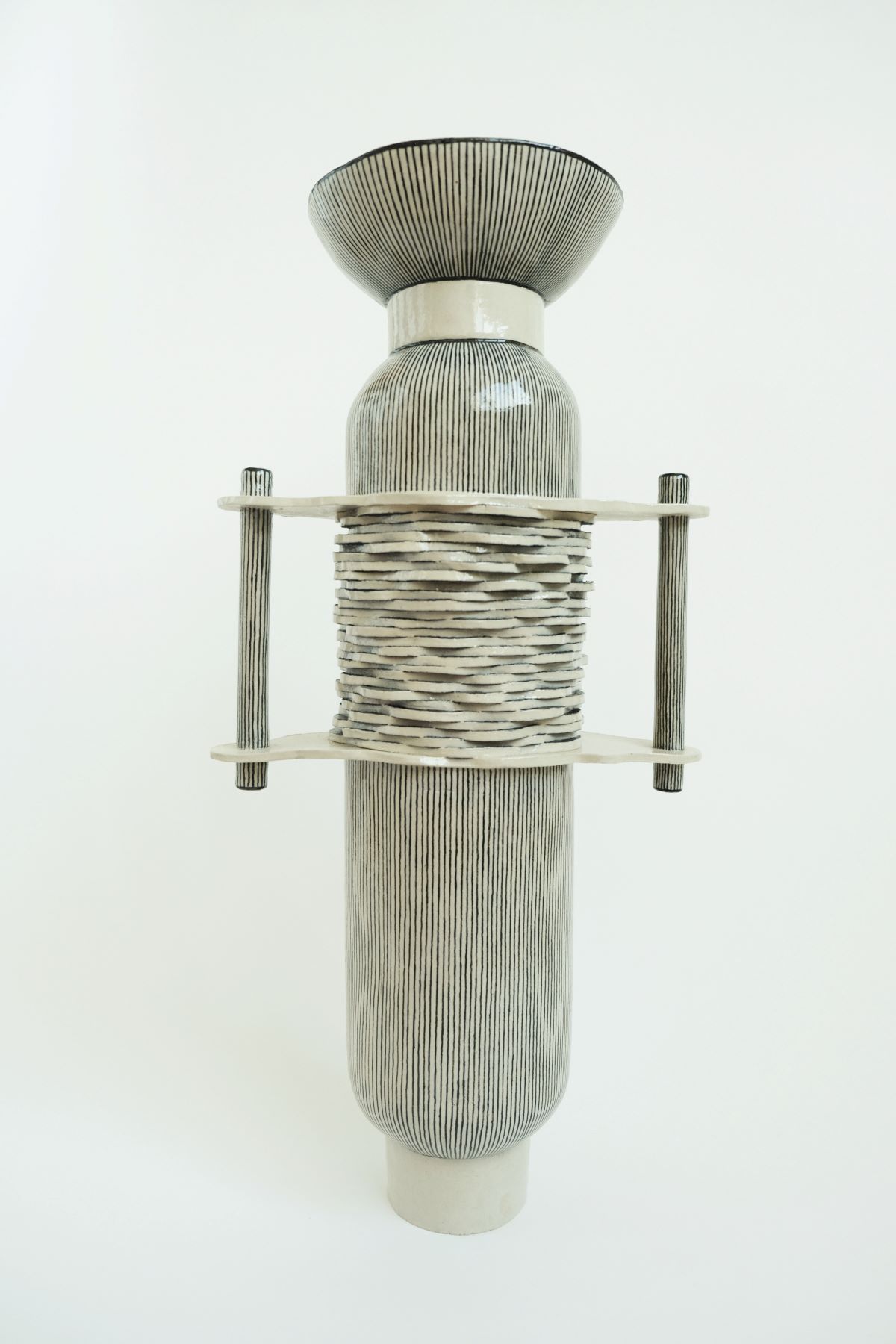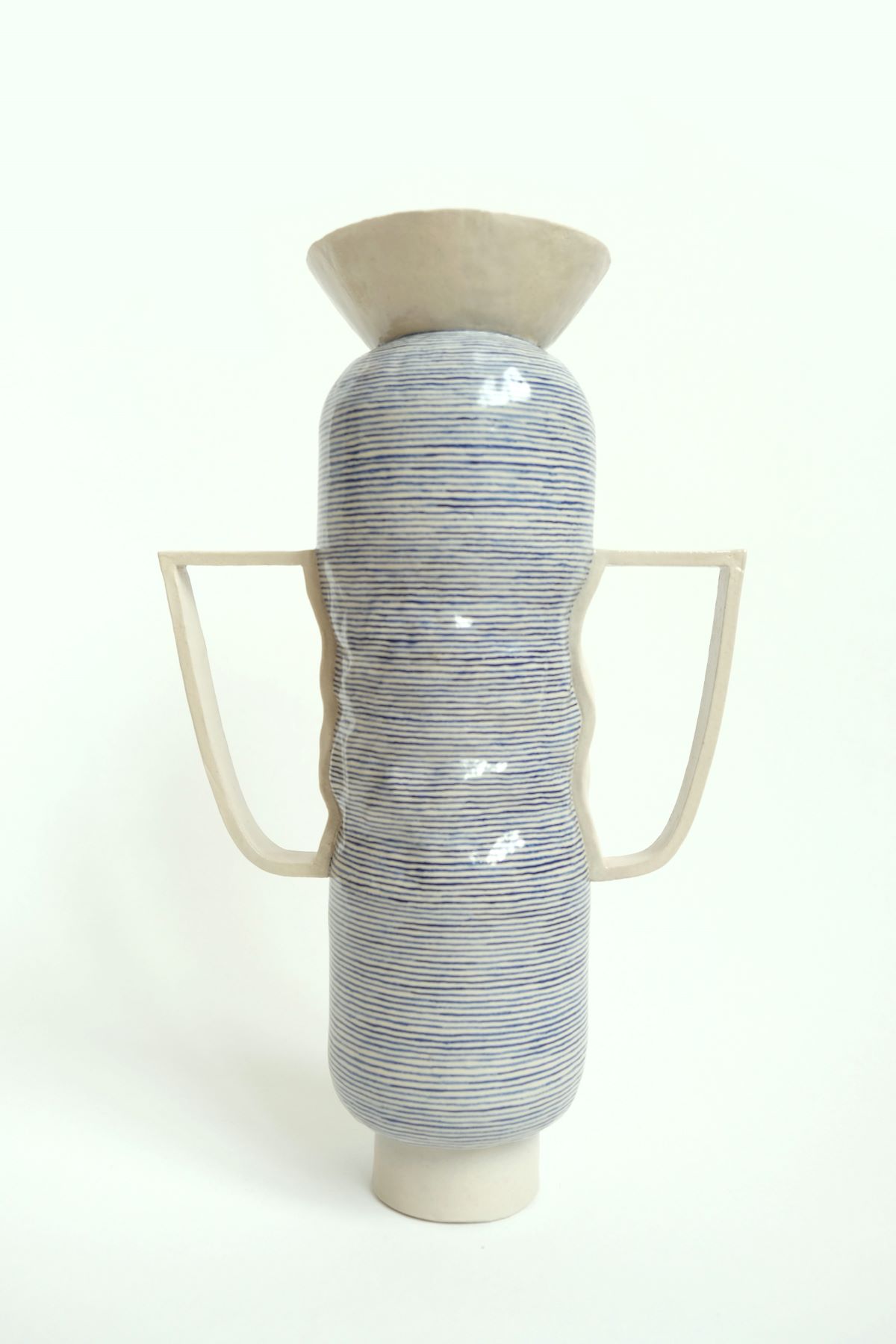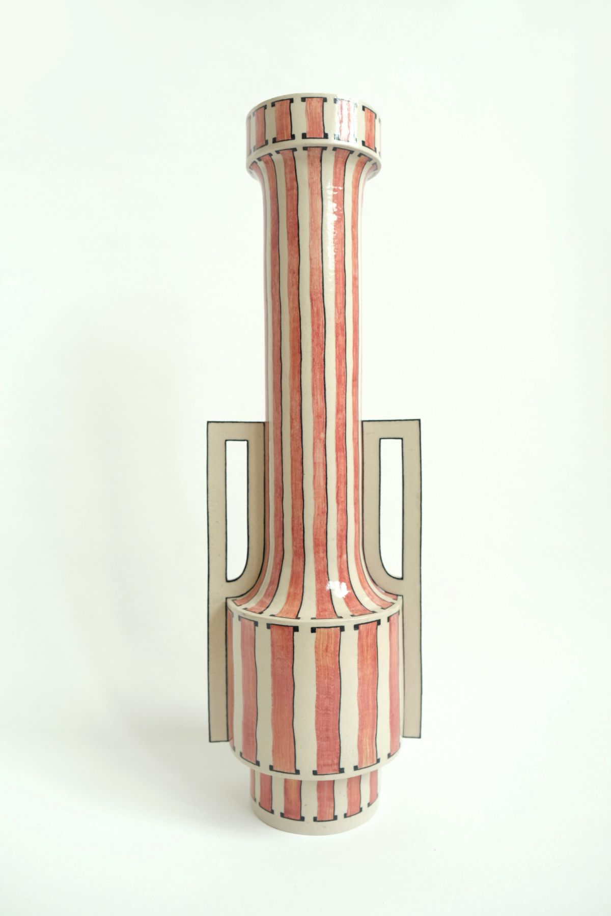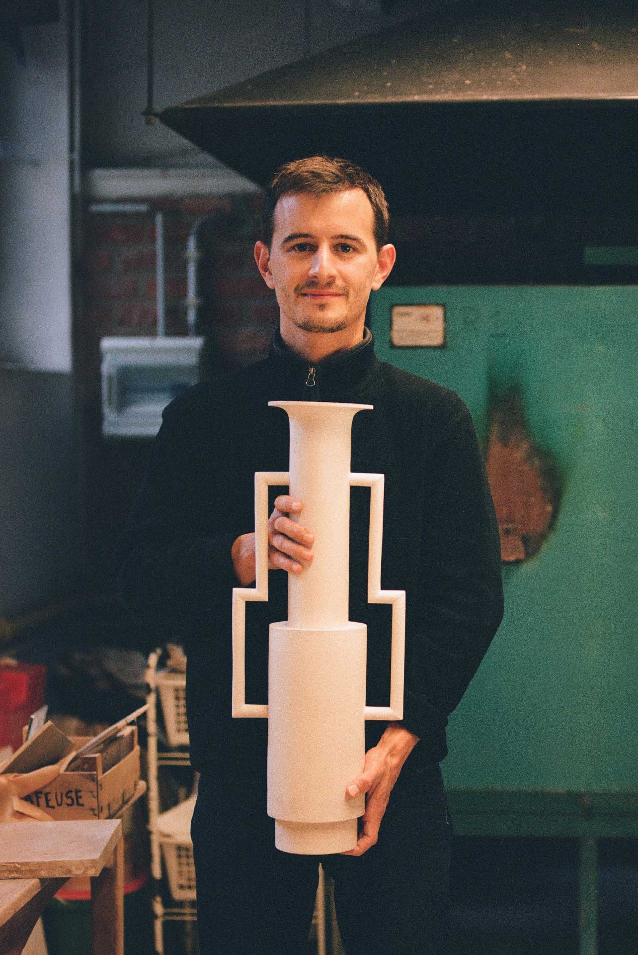 Vincent Doreau studeerde striptekenen aan de ESA Saint-Luc en heeft net een tweede diploma keramiek behaald aan de Academie voor Schone Kunsten in St-Gilles. We werden verleid door zijn serie amforen, die ons mee terug in de tijd nemen door gedurfde herinterpretatie van vormen en codes uit verschillende tijdperken van design en ambacht. Hij laat zich disciplines vermengen en versiert zijn stukken nauwgezet met motieven op de manier van een textielontwerper of illustrator.