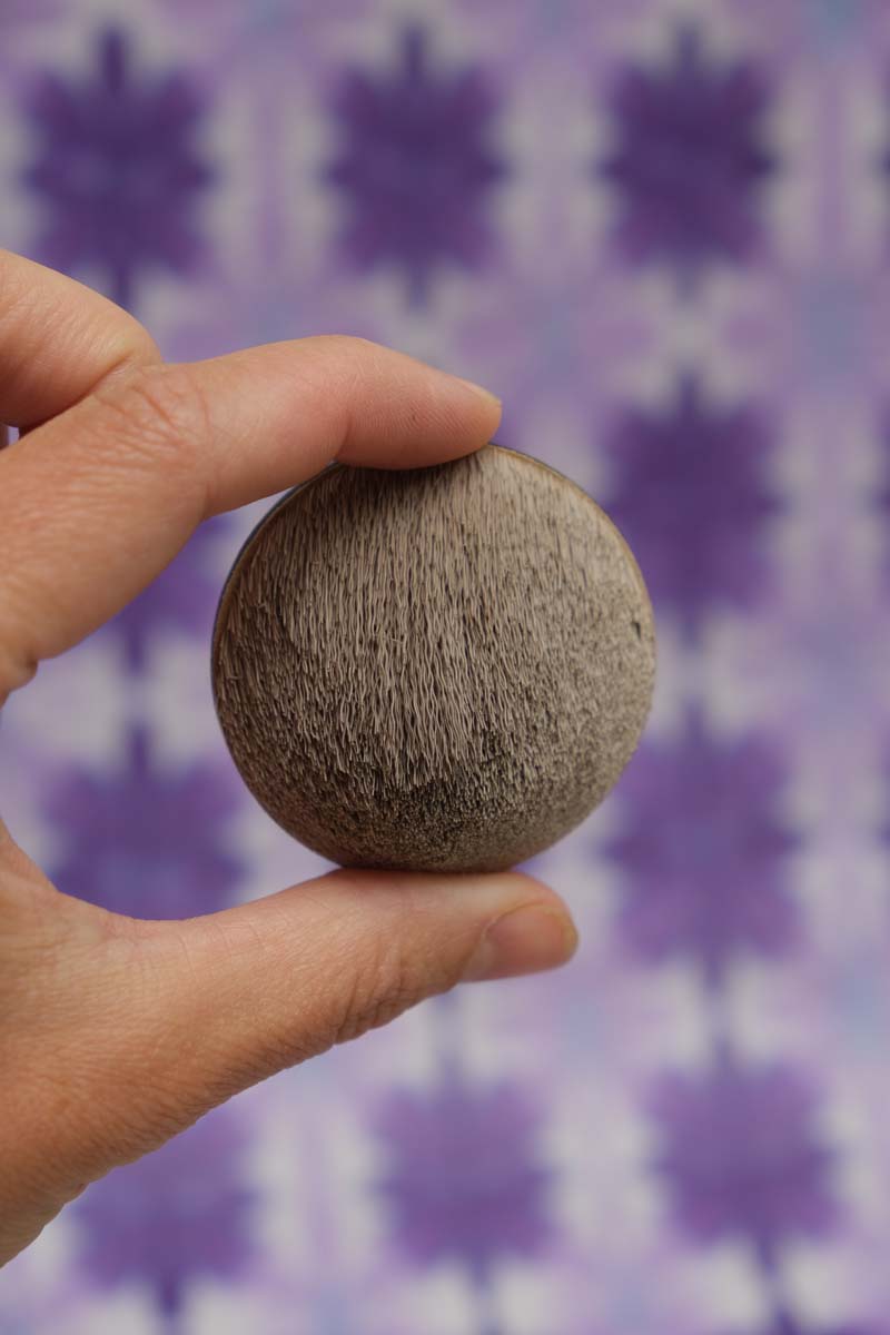 Broche van grijs/beige haar met een zeer sterke magneet. Prachtig in de winter op een zwarte trui voor een camouflage-effect of in de zomer op een spijkerjasje.