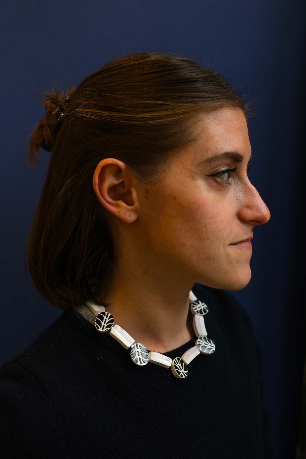 Créé par Julie Decubber, ce bijou s’inscrit dans un travail de métamorphose de la céramique. Fascinée par cette matière chargée de mémoire, l’artiste transforme des fragments en parures uniques, où techniques traditionnelles et regard contemporain se rencontrent. Chaque collier devient ainsi un objet précieux, à porter comme une trace sensible et intemporelle.