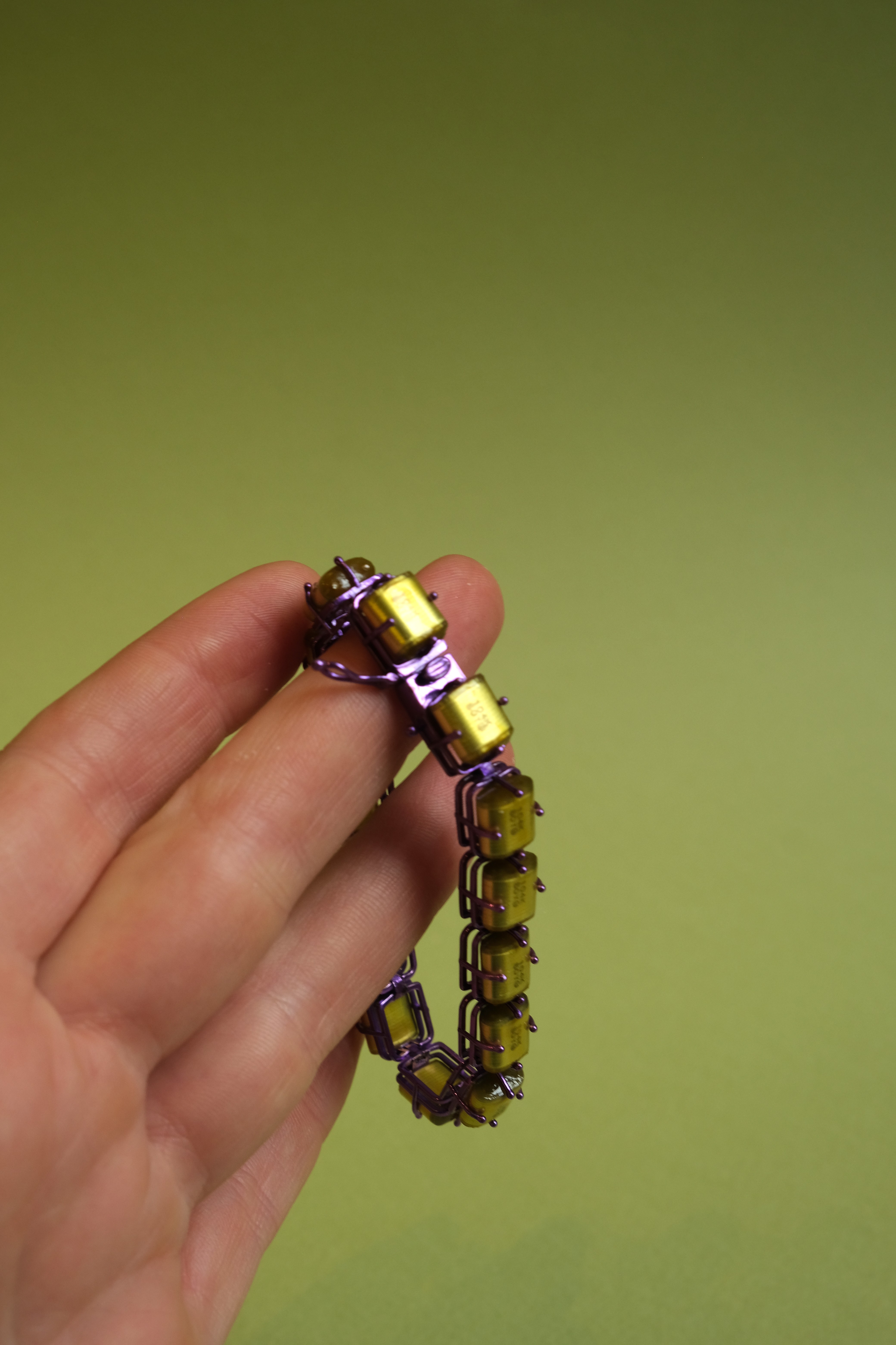Entre virtuel et réel, Xinyi Chen redéfinit l’ordinaire en précieux. En recyclant des composant électroniques, elle transforme l’e-waste en bijou audacieux et colorés, où chaque pièce incarne un lien entre le monde numérique et physique.